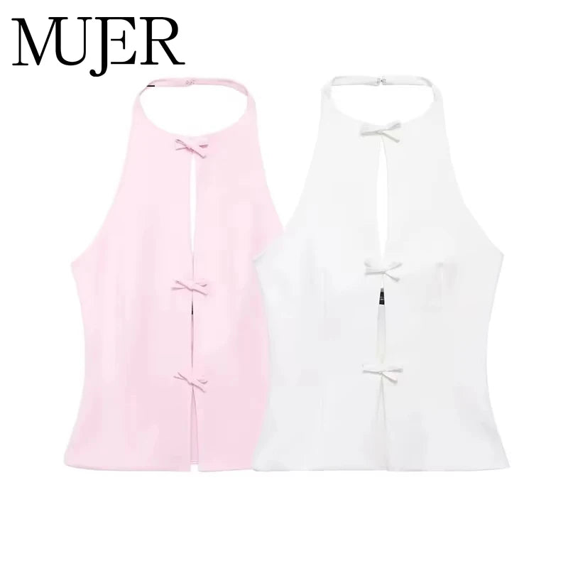 Mujer introduces the Off-Shoulder Halter Crop Top & Matching Mini Skirt, versatile separates designed to be worn together or styled individually. Crafted from premium polyester blend, the halter crop top features an off-shoulder neckline with delicate bow accents, strategic cutouts, and a backless silhouette. The coordinating mini skirt completes the look with seamless sophistication. Perfect for summer celebrations, vacation styling, or mixing and matching with your wardrobe essentials for endless possibilities.