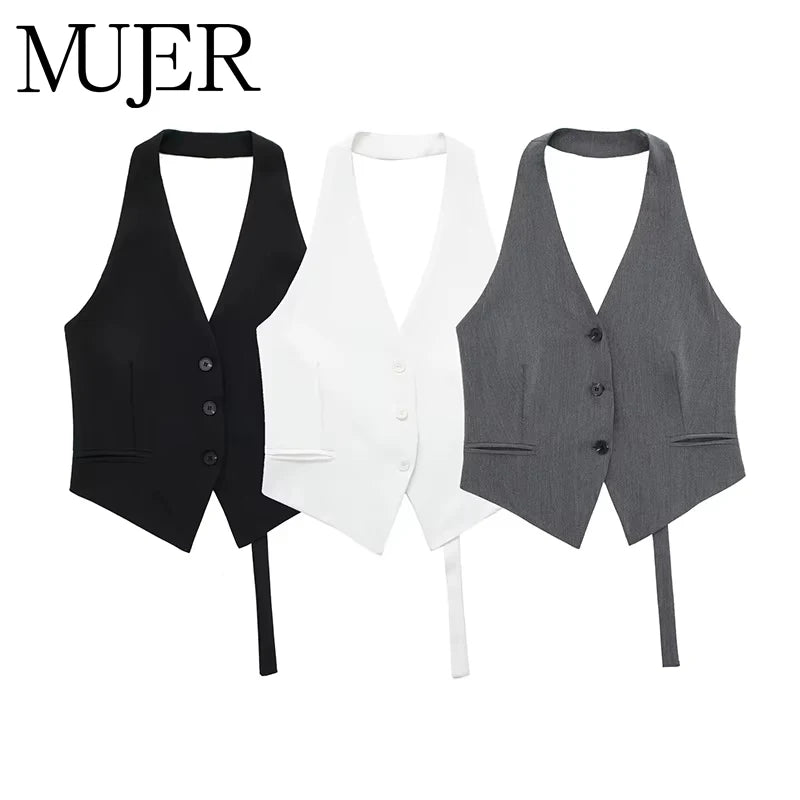 Off-Shoulder Cropped Vest with V-Neck – Sleeveless Tailored Waistcoat